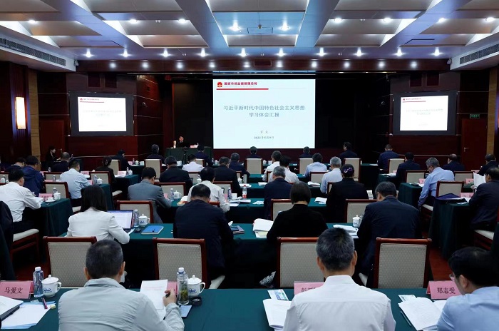在讀書班集中交流暨總結(jié)會上,總局領(lǐng)導(dǎo)、食品安全總監(jiān)作重點發(fā)言,結(jié)合分管領(lǐng)域談學(xué)習(xí)體會和貫徹落實工作打算,各組就學(xué)習(xí)討論情況作匯報發(fā)言。總局黨組成員、副局長田世宏在總結(jié)講話時要求,要切實做好學(xué)習(xí)貫徹習(xí)近平新時代中國特色社會主義思想的深化、內(nèi)化、轉(zhuǎn)化工作,進一步增強運用新時代黨的創(chuàng)新理論成果分析問題、解決問題的能力,進一步強化正風(fēng)肅紀、縱深推進全面從嚴治黨,切實把新時代黨的創(chuàng)新理論轉(zhuǎn)化為做好具體工作的思路、舉措。