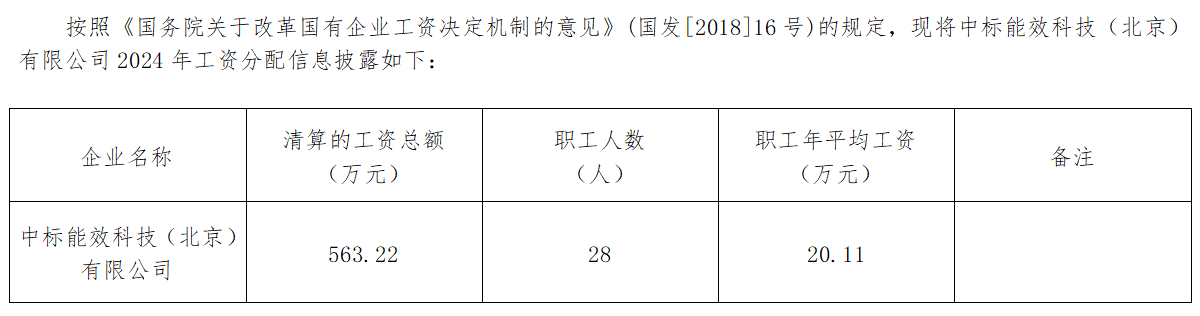 2024年中標能效科技(北京)有限公司工資分配信息披露