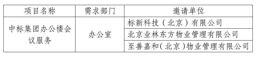 按照《中國標(biāo)準(zhǔn)科技集團(tuán)有限公司采購工作管理辦法(試行)》要求,現(xiàn)對(duì)中標(biāo)集團(tuán)辦公樓會(huì)議服務(wù)項(xiàng)目競爭性談判邀請(qǐng)單位公示。