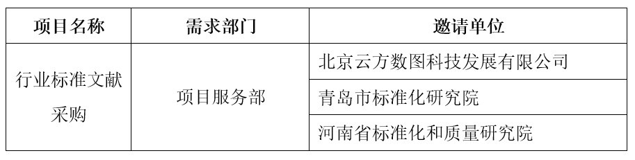 按照《標(biāo)新科技(北京)有限公司采購(gòu)工作管理辦法(試行)》要求,現(xiàn)對(duì)“行業(yè)標(biāo)準(zhǔn)文獻(xiàn)采購(gòu)”項(xiàng)目競(jìng)爭(zhēng)性談判邀請(qǐng)單位進(jìn)行公示。